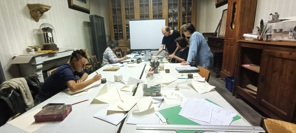 11 personnes ont participé au stage du 14 octobre 2023 et différents types d’écriture ont été découverts. Les stagiaires ont choisi chacun un type d’écriture et ont tenté d’élaborer leur menu de repas. Pour le prochain stage, un autre thème sera proposé.