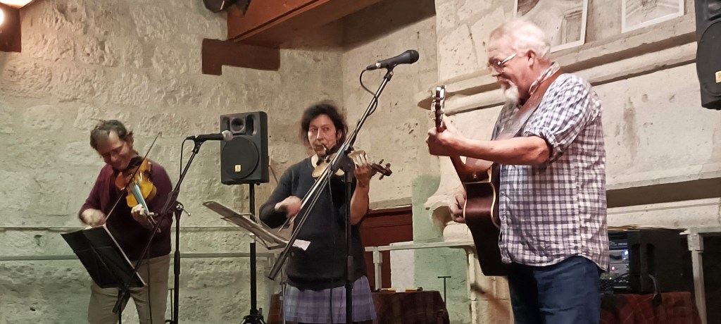 Scotch Mist sera en trio à Saint-Maurin avec Martin Neish natif de Perth en Ecosse fondateur du groupe au chant et à la guitare, Cathy Castet au violon, mandoline, border pipes et chant, et Mario Peperoni au violon.