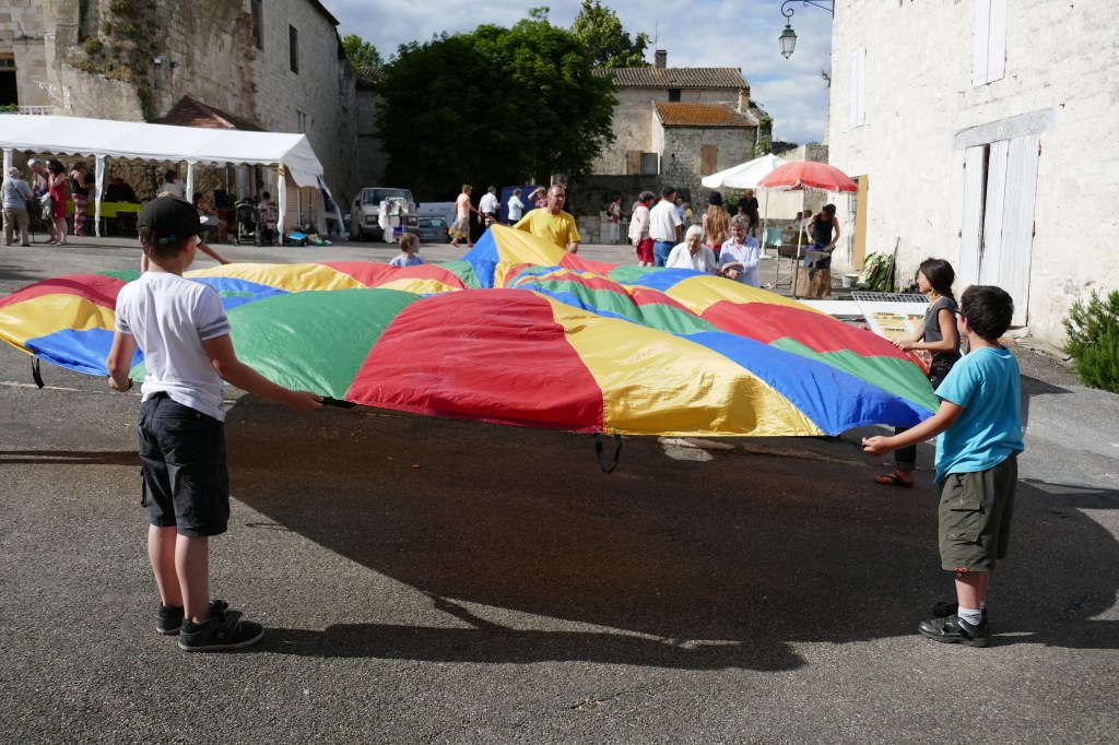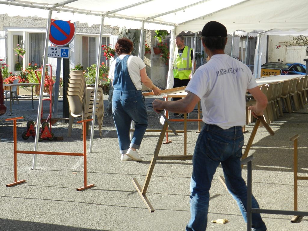 Photos: Les préparatifs – Zumba avec Maritza et ses élèves -La buvette – Bal trad avec Los Escampilhats – Fabrication d’une tourtière – Jeux de rampeaux adultes et enfants – Vidéo collectage 1976 bugada et chants (mis en boucle)- Vente des DVD du Film de TF1 (1978) -Histoire de vivre à Saint-Maurin (mis en boucle)