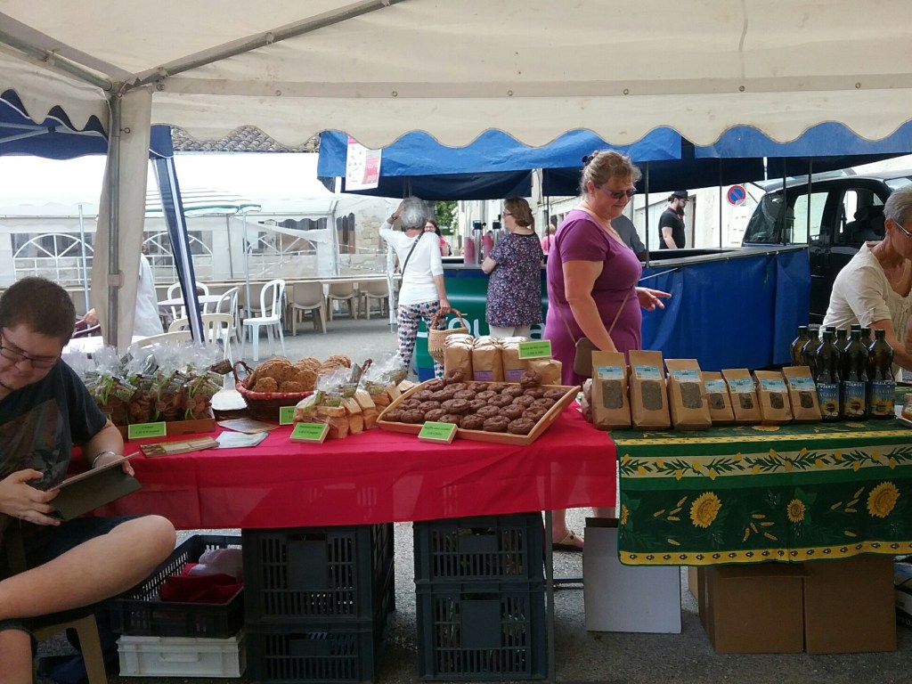 Les produits locaux: huile bio de Régine Dussel – Biscuits de Nadine Aeschliman – Miel de Bernadette Lemonnier
